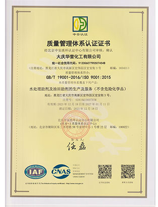 大慶華營化工有限公司成立于2006年7月10日,注冊資金3300萬元,公司類型為有限責任公司。位于大慶高新技術產(chǎn)業(yè)開發(fā)區(qū)宏偉園區(qū),是一家集油田助劑產(chǎn)品的研發(fā)、生產(chǎn)、銷售和技術服務為一體的現(xiàn)代化高新技術企業(yè)。公司注重科技創(chuàng)新,公司擁有18項自主知識產(chǎn)權。企業(yè)承擔過國家火炬計劃重點項目、國家科技型中小企業(yè)創(chuàng)新項目等,2011年被科技部火炬高新技術產(chǎn)業(yè)開發(fā)中心評為國家火炬計劃重點高新技術企業(yè)。公司十余種產(chǎn)品獲得中國石油天然氣集團公司產(chǎn)品質(zhì)量認可證書,其中粘穩(wěn)型驅(qū)油劑獲國家火炬計劃重點項目證書。公司憑借多年對大慶油田及周邊油田地質(zhì)情況的研究,可針對各油田地層特點調(diào)整產(chǎn)品的配方,更好地發(fā)揮各類油田助劑的性能。